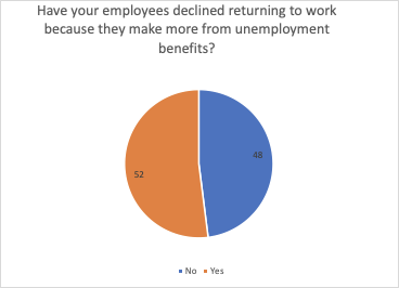 It has also created a difficult situation for employers. According to a poll conducted on July 10, by digital news and information publisher SmartBrief, a significant number of employees have chosen not to return to work.