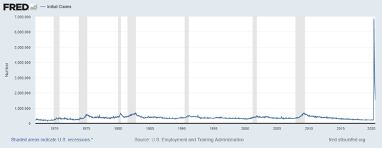 For one thing, new unemployment claims quickly skyrocketed, like never before. Just take a look at this chart.